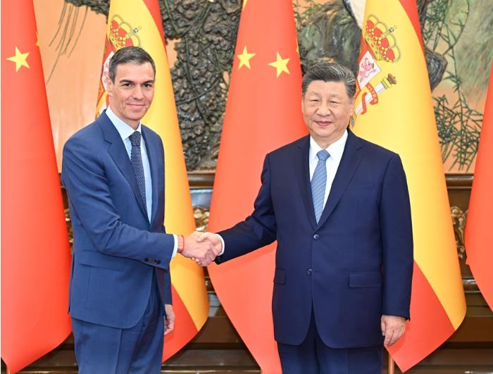4月14日上午,国家主席习近平在北京人民大会堂会见来华进行正式访问的西班牙首相桑切斯。
