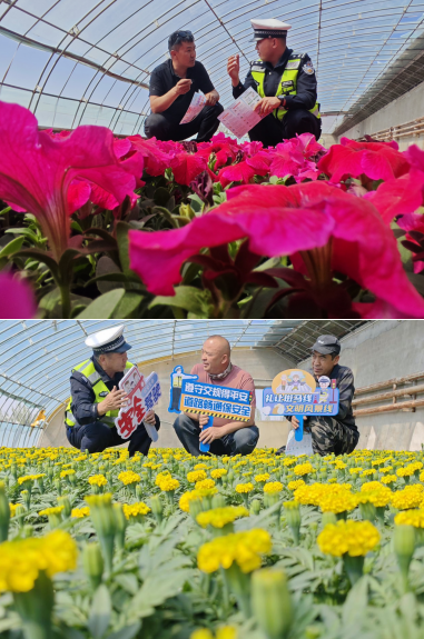 交通安全无小事,安全出行你我他。宣传中队民警辅警上门为花圃园林人普法送安全,用“身边事”警示“身边人”,耐心讲解春季道路交通安全注意事项,宣传酒驾醉驾、无牌无证、超员超速、开车不系安全带、乘骑电动车和摩托车不戴安全头盔等严重交通违法行为的危害性,让园林人在花卉大棚里边劳动,边享受到精心准备的交通安全“大餐”,希望园林人个个争做文明交通参与者、宣传者和践行者,人人把遵守交通法规,知危险会避险、安全文明出行放在首位,全力拧紧道路交通“安全阀”,切实守护好园林人生命财产安全,为城市绿化美化尽心尽力。(严万海)